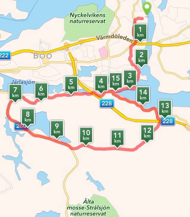 Efter typ 12 km kom vi till en olycka… En bil hade voltat, tvärs över gamla Saltsjöbadsvägen så att inga bilar kunde komma fram – man kunde precis passera med cykel… Läskigt! Som tur var kom vi inte först utan polisen var där. Undrar vad som hade hänt? Mobilen kanske?