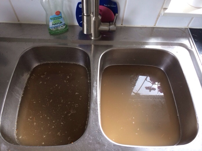 Igår var det ugnen och idag hamnade vattnet från diskmaskinen här och vill inte rinna ner…